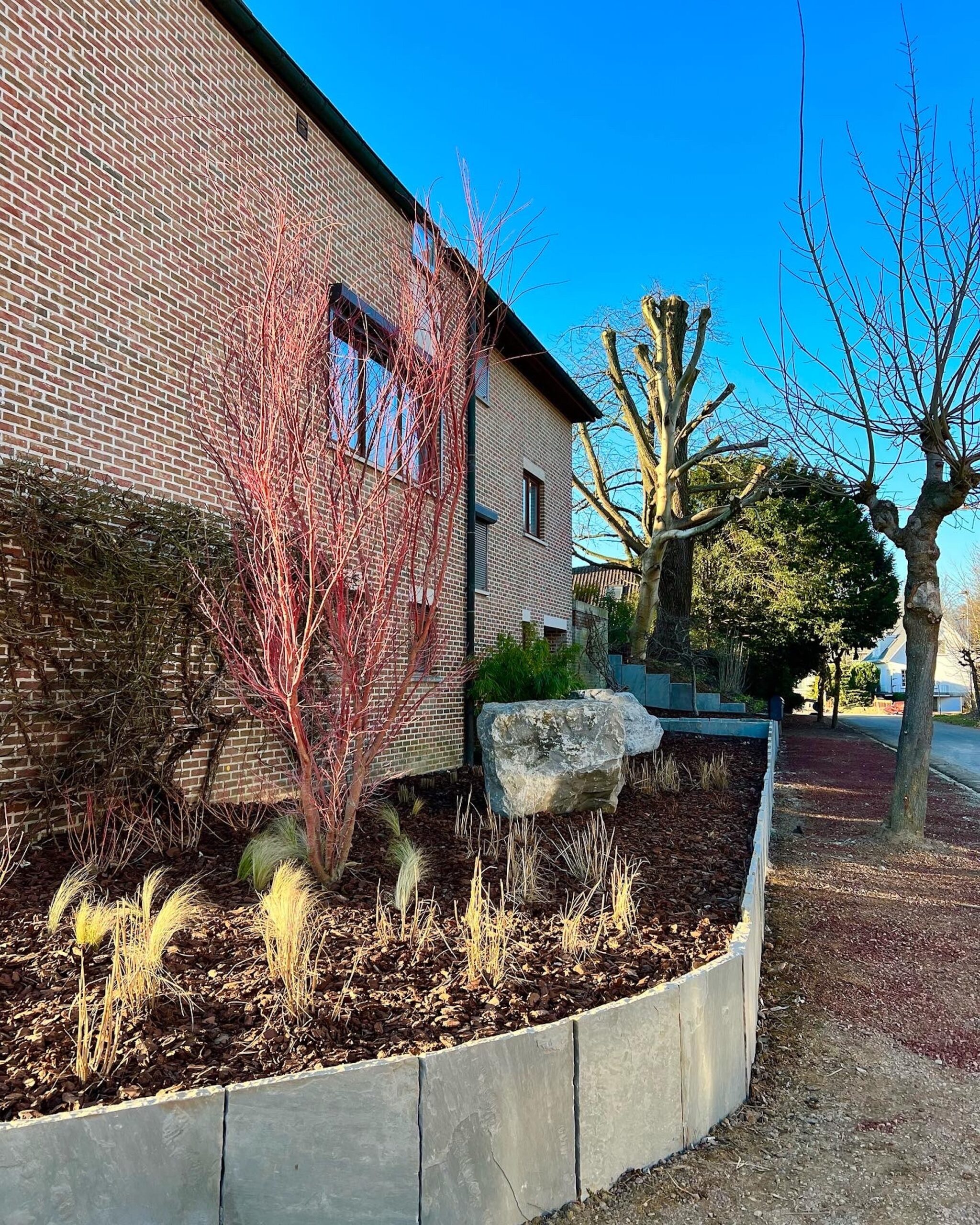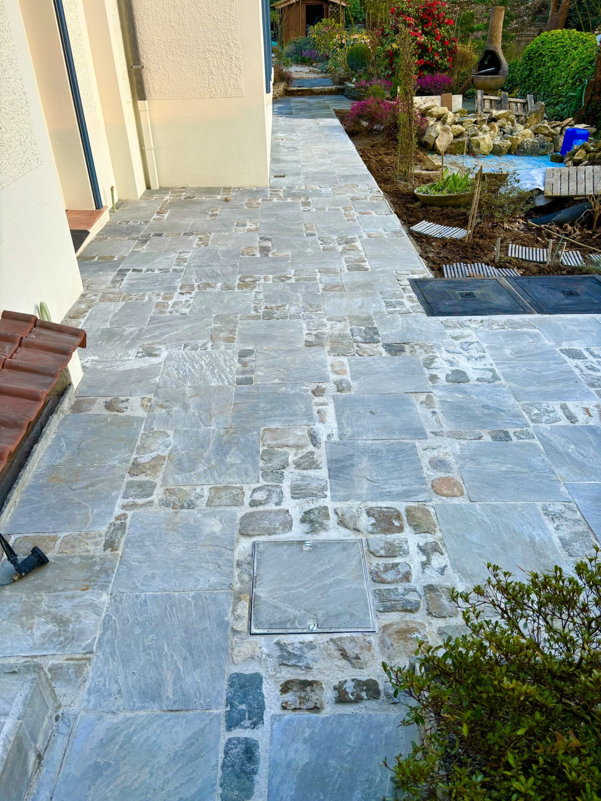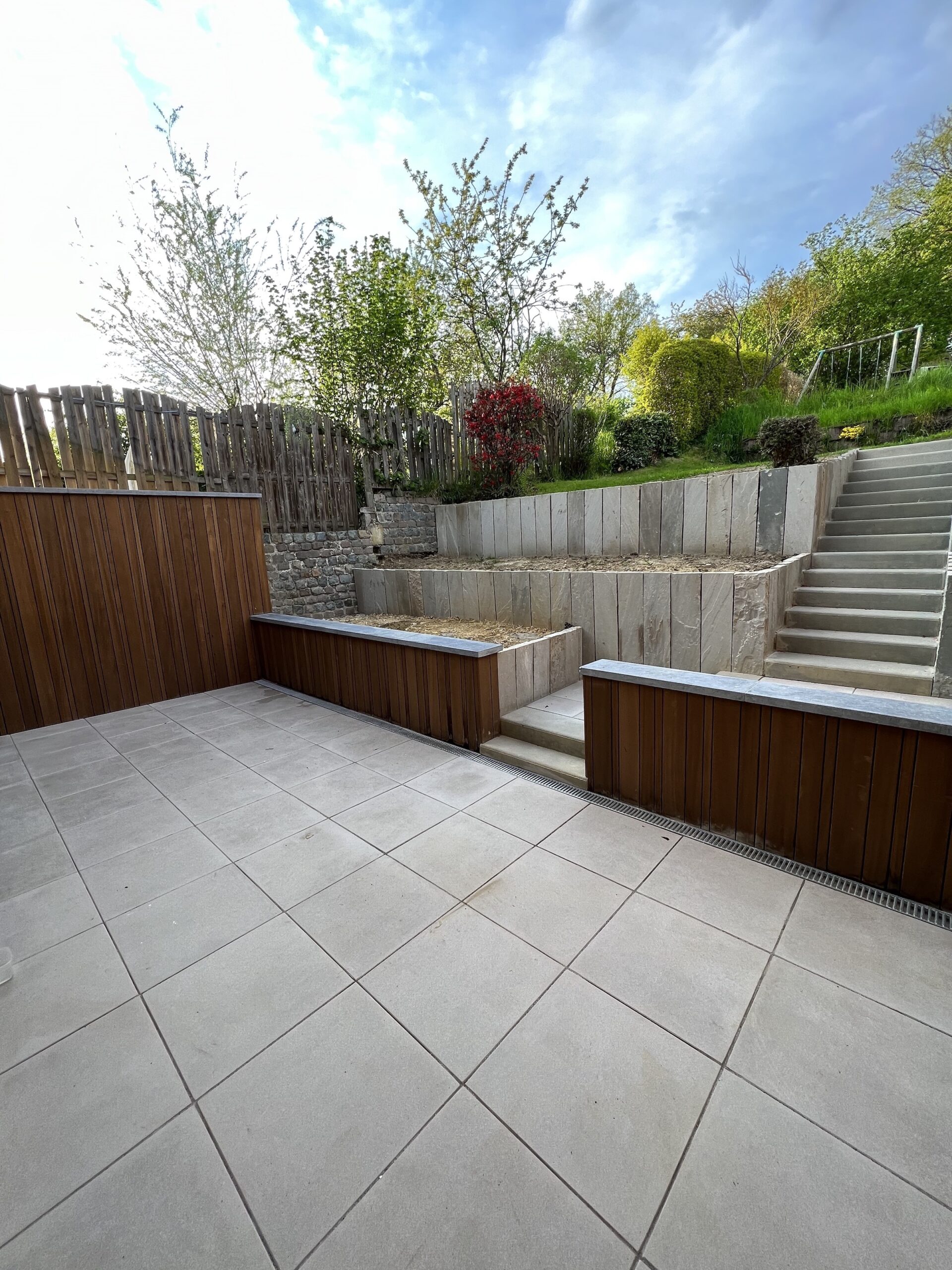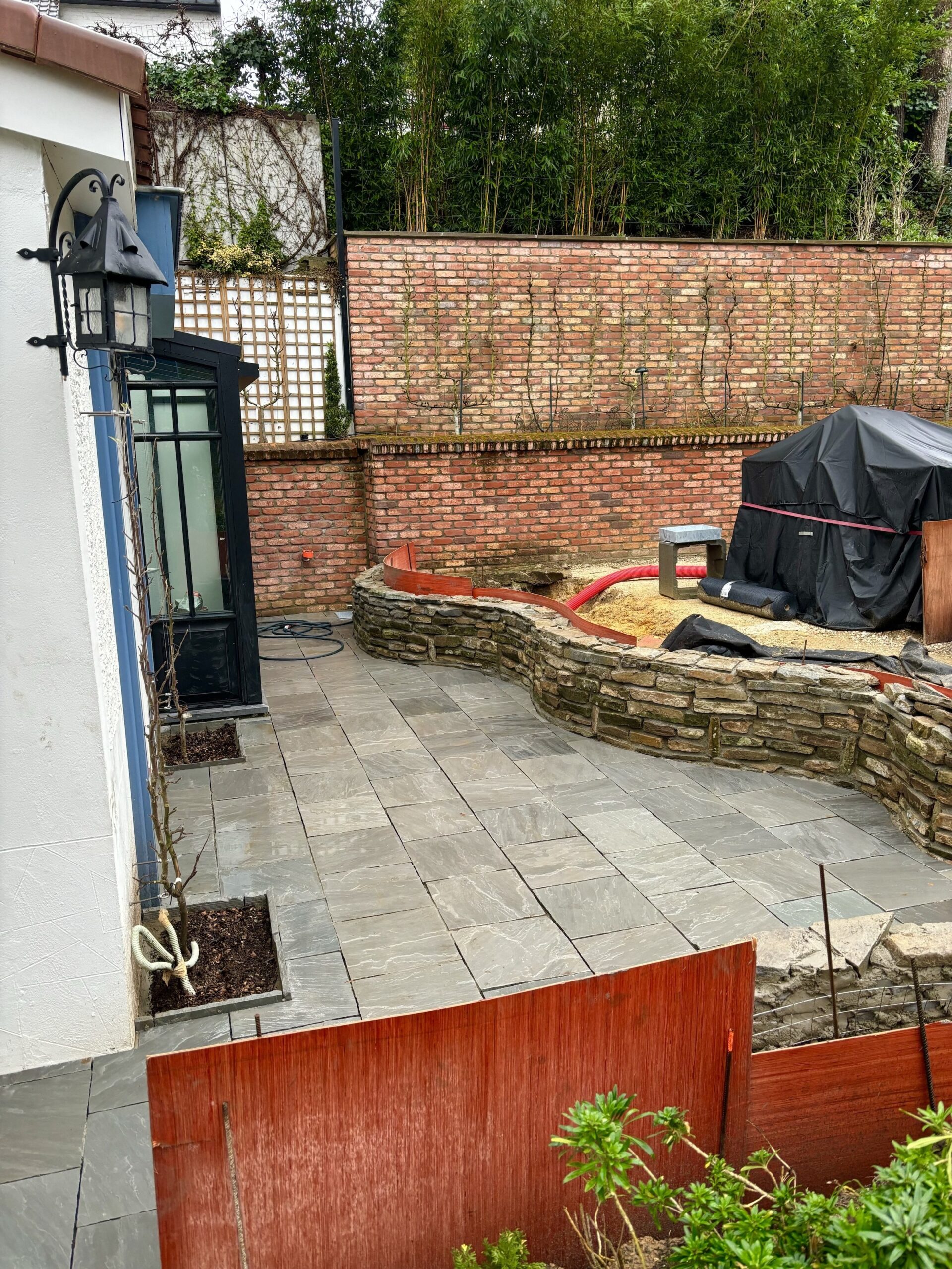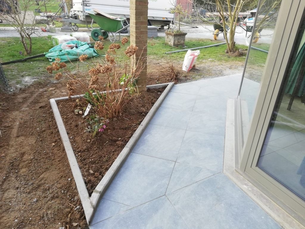 Nous offrons une vaste gamme de services, incluant la maçonnerie de haute qualité pour murs et murets, la pose de bordures raffinées, la création d’escaliers en pierre bleue et plus encore. Notre expertise en terrassement et notre souci du détail garantissent que chaque aspect de votre projet est réalisé à la perfection.