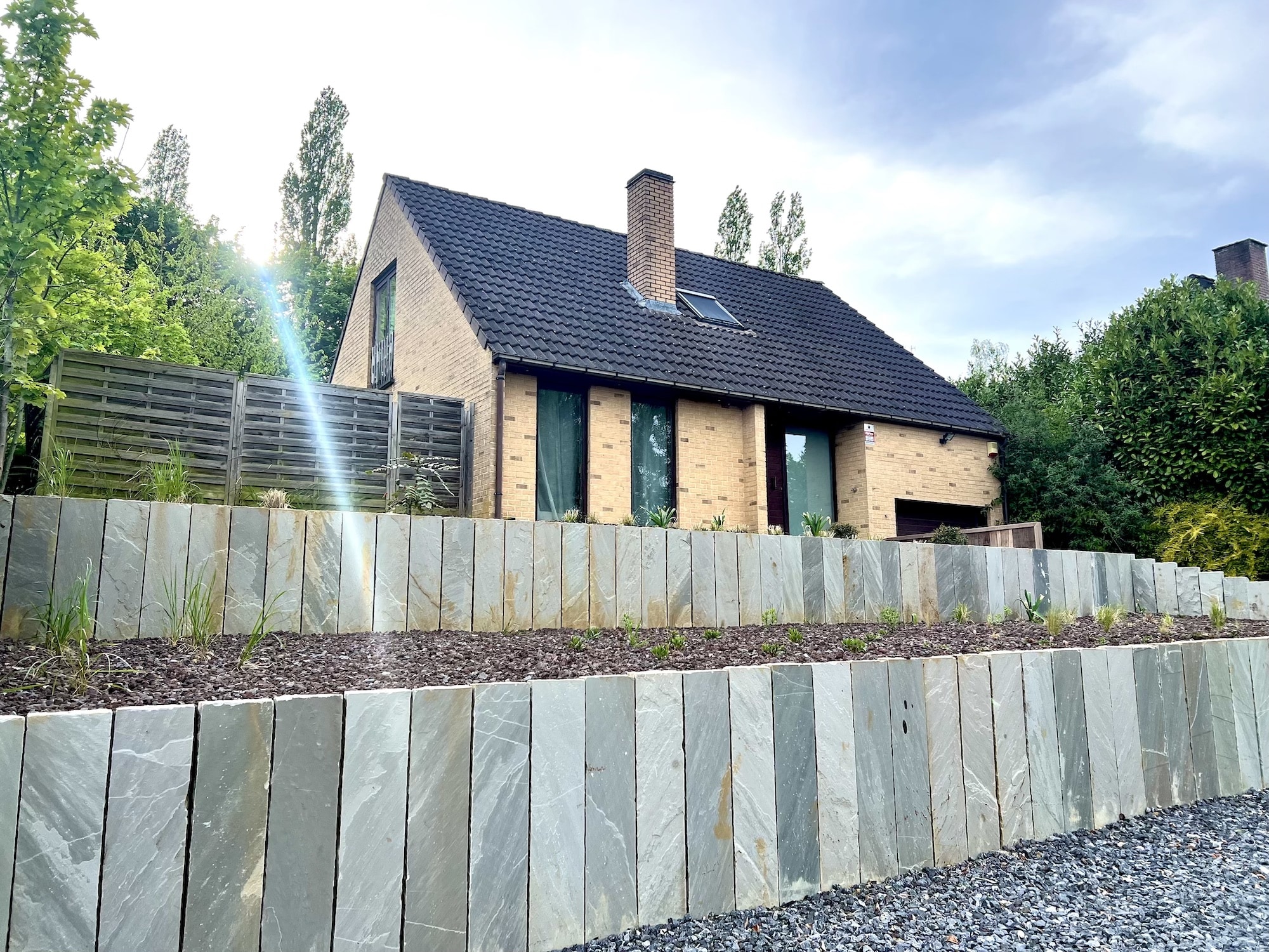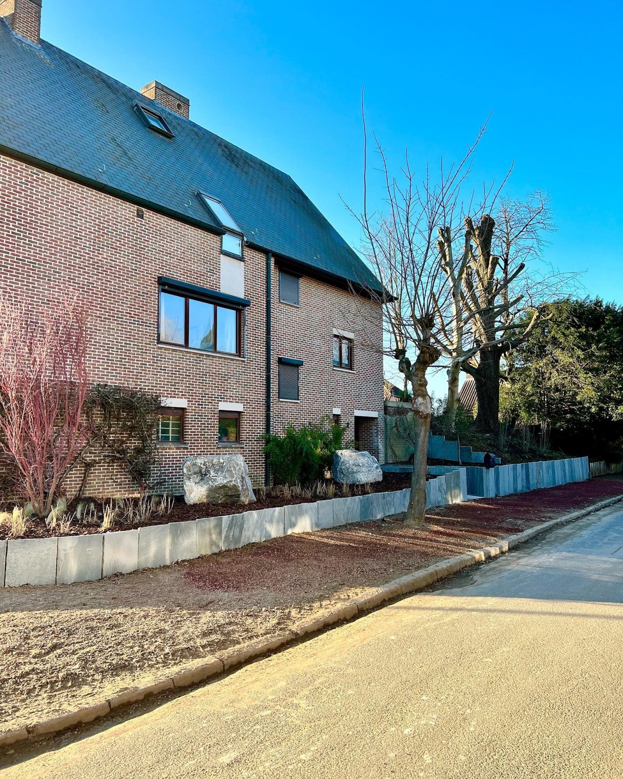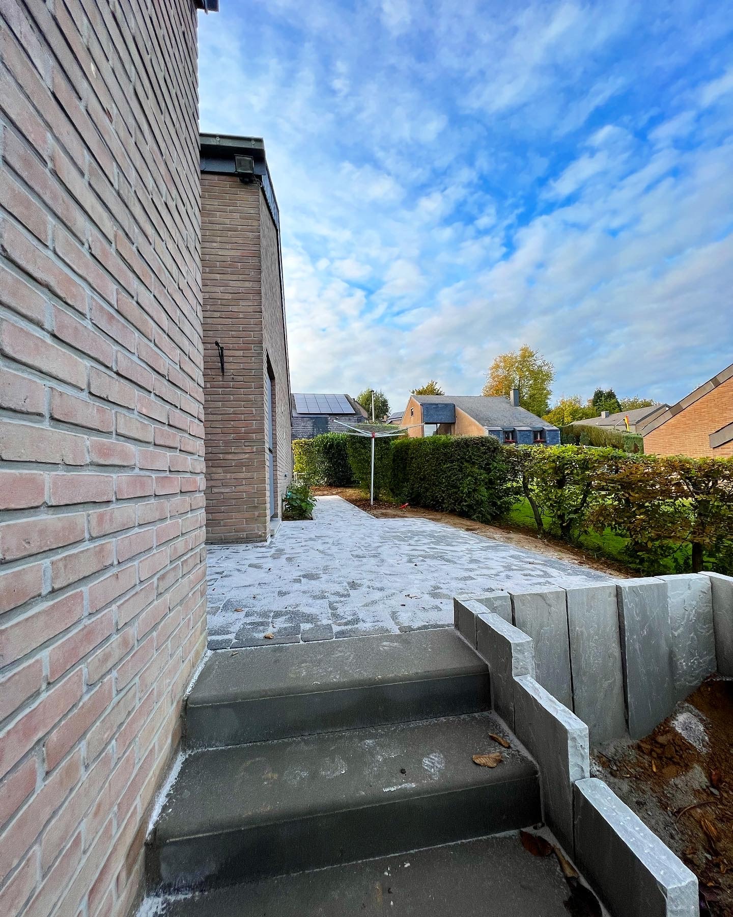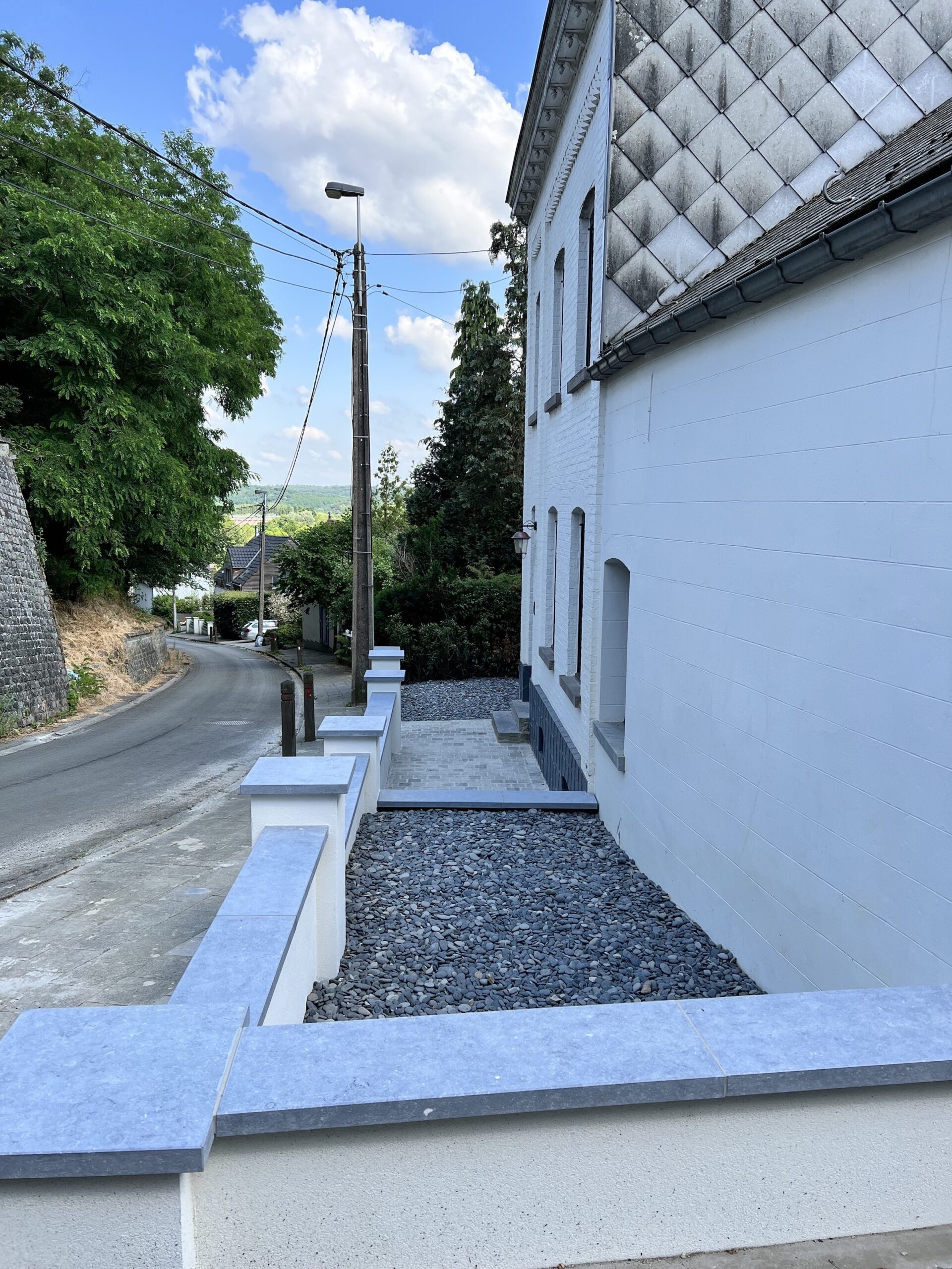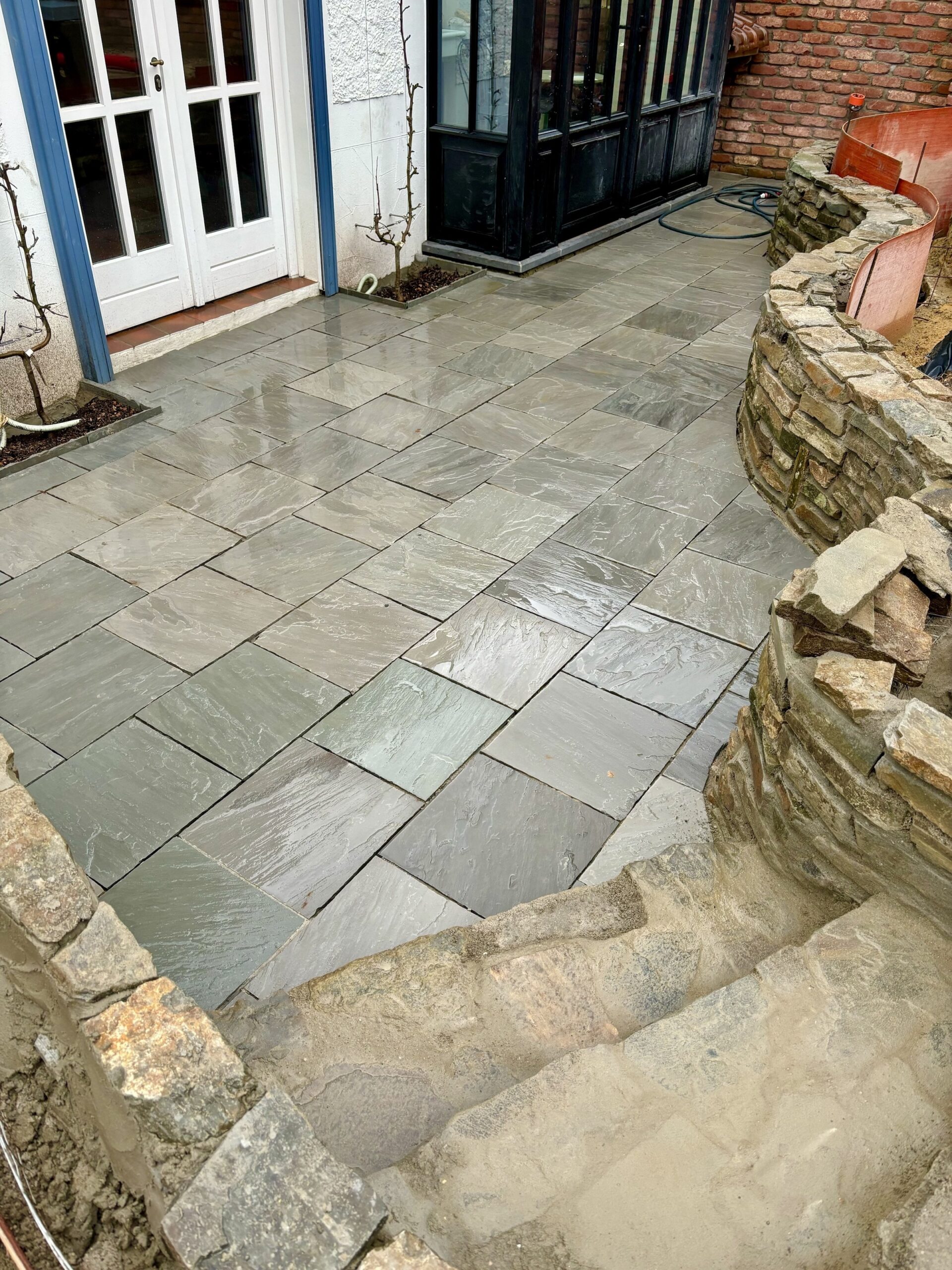 Nous offrons une vaste gamme de services, incluant la maçonnerie de haute qualité pour murs et murets, la pose de bordures raffinées, la création d’escaliers en pierre bleue et plus encore. Notre expertise en terrassement et notre souci du détail garantissent que chaque aspect de votre projet est réalisé à la perfection.